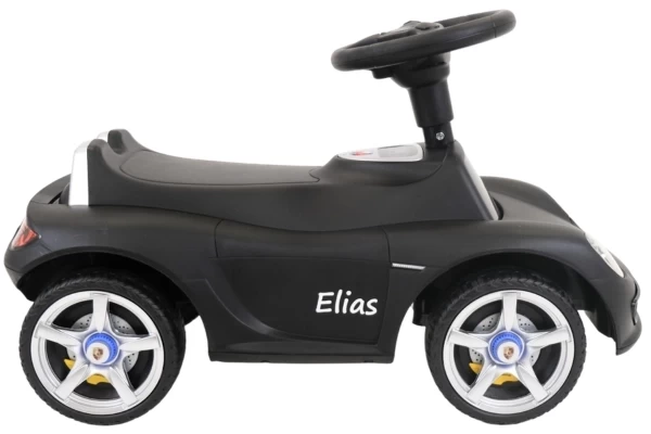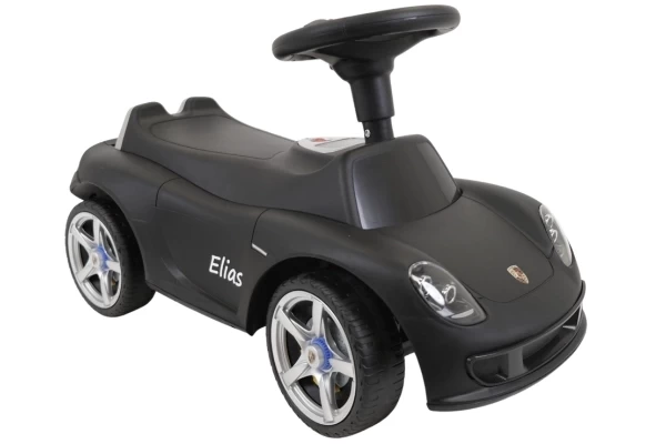 Personaliseer de zwarte Porsche Carrera GT loopauto met een eigen naam! In deze set ontvang je twee witte naamstickers die je naar wens op de zijkanten van de loopauto kunt aanbrengen. Vul een naam in van maximaal 10 karakters en maak de auto helemaal uniek. Je ontvangt een duidelijk stappenplan voor het eenvoudig aanbrengen van de stickers.